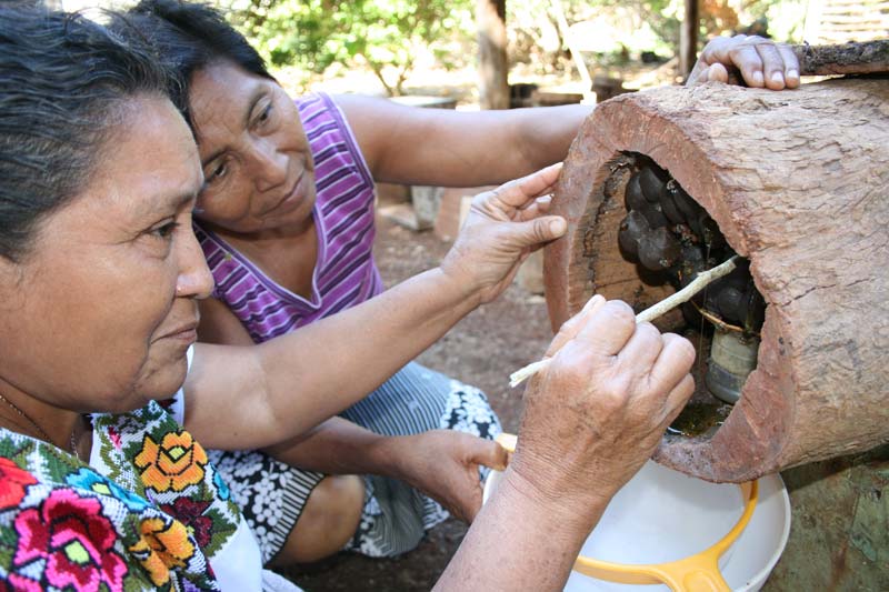 You can go visit Coba, directly to the archaeological zone  by your own, renting a car. Or you could visit the great Sanctuary of the Melipona bee and Mayan Cacao to live some ancestral experiences. Like grinding cacao in the antique mayan style, using a “metate” an stone grind. This mayan zone is only 3 kilometers towards Tulum, we were there, the children enjoyed a chocolate drink (organic cacao) and we enjoyed a very rich cacao liquor. We saw some crafts that work in the same Mayan community, they explained to us how they extract the honey of the melipona bee and all its properties, we bought some souvenirs and they gave us some tips to go to Cobá such as bringing enough water, insect repellent and comfortable shoes.